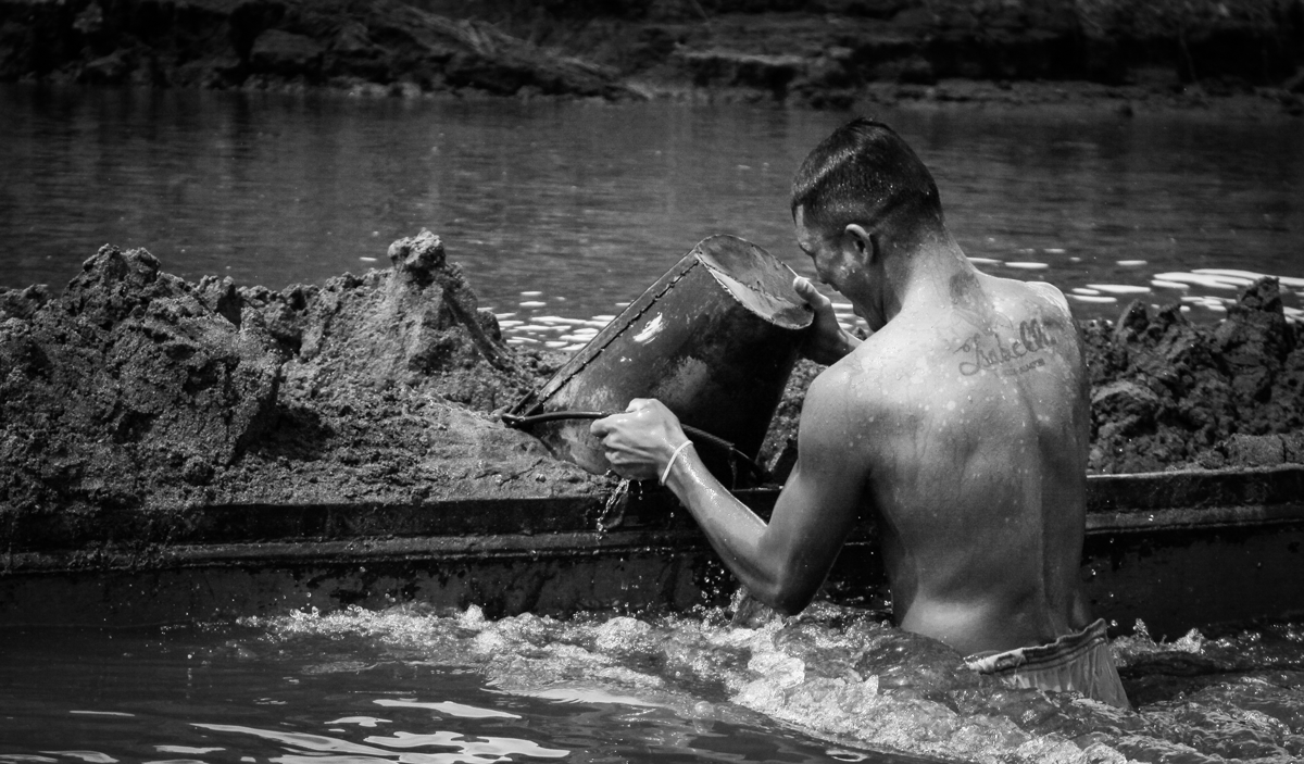 Para hacer más evidente el desequilibrio basta saber que un sacador artesanal llena una lancha de nueve metros por medio de unas 900 inmersiones con un pesado balde metálico en la mano y eso ocupa horas. Esa misma labor se realiza con motobombas en cuestión de minutos; esto, según la CARDER, causa además daños ambientales en el lecho del río.
