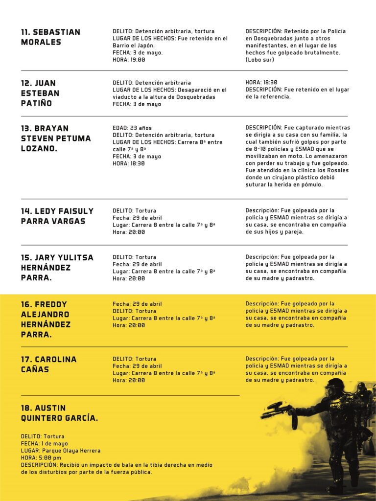 Conozca el informe detallado del Comité de Derechos Humanos de Risaralda en cuanto a homicidios, desaparecidos, amenazados, detenciones con judicialización, detenciones arbitrarias y torturas desde el inicio del paro nacional y hasta el 13 de mayo en esta región del país.