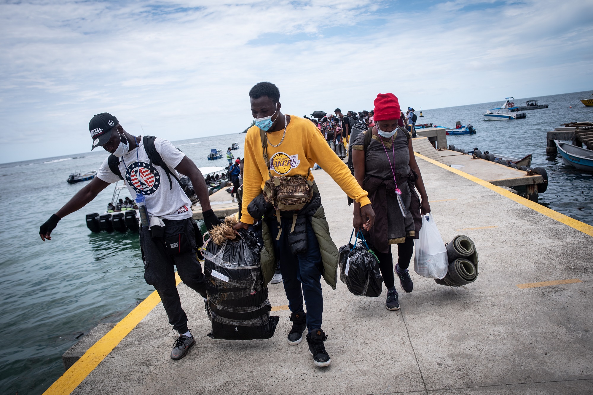 En ese lado de la costa la situación migratoria parece descontrolada. Capurganá es un paraíso natural con menos de 4.000 habitantes, afro en su mayoría. Es la puerta de entrada al Darién, pero también es una costa exuberante de aguas que destellan azules cerúleos y aguamarinas. A las 10:00 de la mañana arriban las lanchas con los turistas, y hacia el mediodía aparecen los migrantes. Los nativos les dicen ‘los negritos’. Es fácil reconocer a uno de ellos en Capurganá. Vienen con enormes morrales, gorros y medias de lana, chaquetas, cobijas. Siempre hay niños.