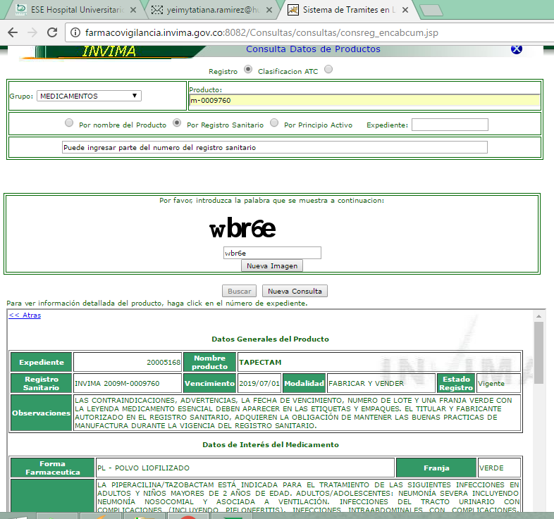Empezó la contratación del HUSJ con otras entidades que apenas habían sido recién creadas o hace poco negociaban con el HUSJ y las cuales serán objeto de la tercera entrega de esta investigación. En febrero de 2017 una de ellas, Dcolfarma, compra al Laboratorio Procaps –esta marca fue exigida por el mismo HUSJ, según Coodesuris– uno de esos medicamentos especiales de alto costo (los mencionados paretos), llamado Piperacilina Tazobactam (Tapectam, por su nombre comercial), un potente antibiótico.