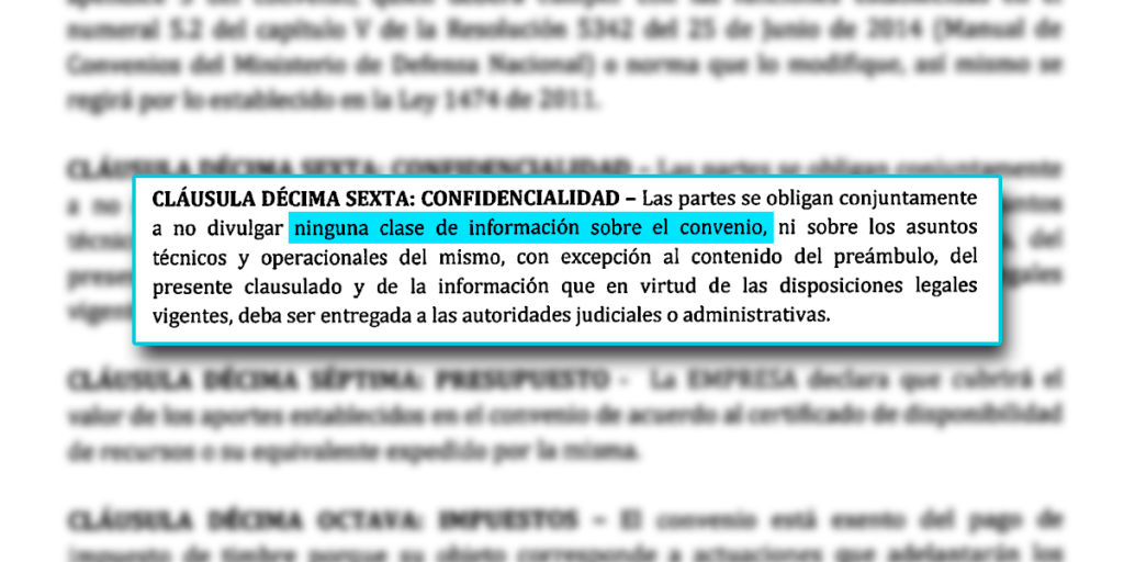 Después de 23 años de vigencia, se sabe tan poco sobre estos acuerdos. Aunque la ley colombiana establece que toda la contratación con entidades estatales debe ser pública a través del Sistema Electrónico para la Contratación Pública (Secop), acceder a la documentación sobre estos convenios es una tarea difícil. Para buscar un convenio en el Secop es necesario contar con el número de radicado, un dato que solo se puede encontrar en el mismo convenio. A esa dificultad se suma que la navegación de la herramienta web no es amigable con el usuario, y que estos documentos tienen un grado de confidencialidad y secretismo dado por el Ministerio de Defensa.