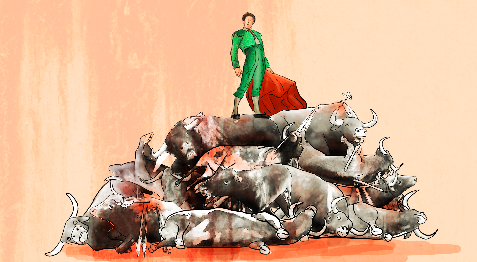 La vida se resiste a toda forma de dominación. Los andenes sucumben ante los tréboles; el toro perece ante la angustia del patriarca impotente, mientras que Manuelerre, ungido de su propia sangre, aprende que golpear las güevas del toro es golpear las güevas propias. Y comerse todas las vergas del mundo no lo cambiará.