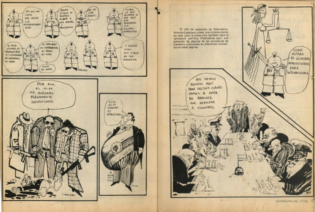 El ataque a la libertad de prensa era evidente: “Durante los seis primeros meses del Estatuto de Seguridad, 23 emisoras de radio fueron sancionadas y muchos periodistas perdieron su libertad; hasta se llegó a calificar de subversión cultural al ejercicio de la profesión periodística”,[15] dice Maryluz Vallejo. Como lo enfatiza Agudelo Castro, frente a esa precariedad del ejercicio periodístico independiente “en un momento dado, Alternativa se quedó sola como el único medio de circulación masiva en el país en oponerse al régimen bipartidista Liberal-Conservador y a la brutal ofensiva de la clase política contra la protesta popular y la izquierda”.[16]