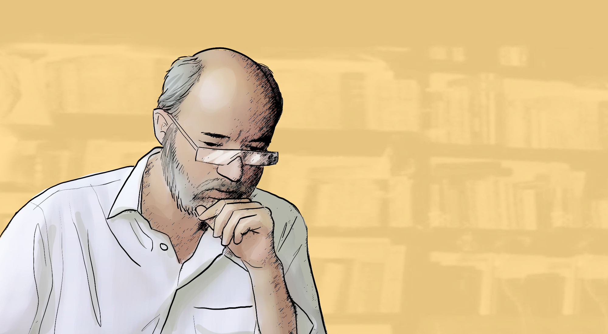 Está casi acostado en un confortable sillón y se ha quitado los zapatos. La mirada reconcentrada y melancólica de los que no se cansan de escrutar el mundo. Esa es la imagen que conservo de Antonio Caballero.