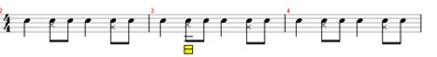 Así, este es el patrón básico de la cumbia: la negra y las dos corcheas: