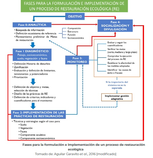 Colombia es un país donde se ha implementado y se planea realizar este proceso en diferentes regiones e, incluso, está ideado a escala nacional, por lo que los nuevos esfuerzos son bienvenidos para mejorar los futuros procesos. Básicamente, el proceso de restauración que se lleva a cabo lo ilustra la siguiente gráfica.