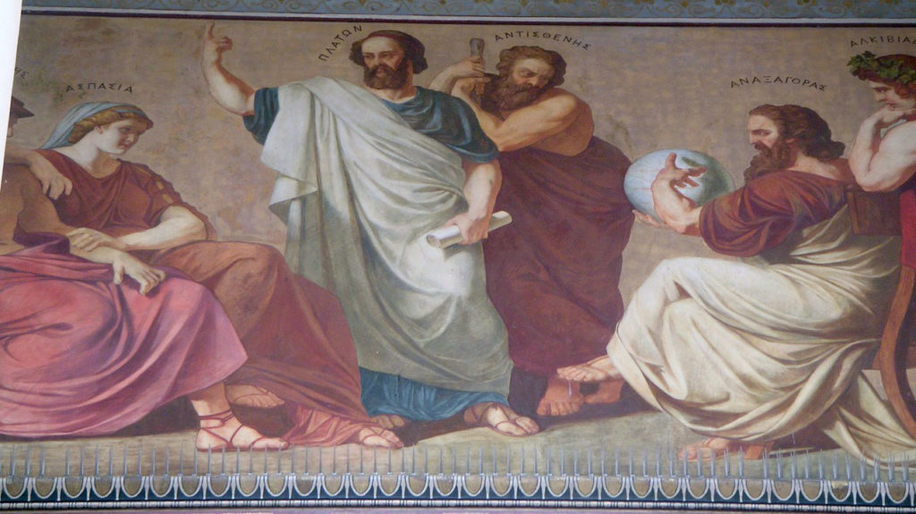 El otro y más célebre de los filósofos griegos de los siglos V y IV a. C. fue Sócrates, que no escribió ningún libro, pero del que todo su pensamiento fue trasmitido para la posteridad en los libros de sus discípulos: Platón y Jenofonte, y por los recuerdos de Aristóteles, quien no vivió en su tiempo, pero al que conoció bien por las enseñanzas de Platón, como lo anota en sus libros.