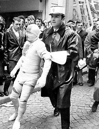 “Imagínese lo que era acabar de hacer un performance que sale en todos los periódicos y al día siguiente ir a trabajar a la oficina. Las caras de la gente”,[8] dice Pinoncelli sobre aquellos años en los que alternaba su trabajo de oficina con sus acciones artísticas. En estas, sin embargo, es difícil saber dónde termina la acción política y dónde comienza la artística o si ésta realmente está ausente, porque a menudo sus acciones eran protestas contra el poder omnímodo, la institucionalidad, la violencia, la política, la cultura y el mismo arte. ¿Se podría considerar una performance su ataque con pintura roja al ministro de Cultura del general De Gaulle? En efecto, el 4 de febrero de 1969 Pinoncelli se presentó en la inauguración del Museo Chagall en Niza, provisto de una pistola de agua que contenía pintura roja y la arrojó al escritor André Malraux, que era ministro de Cultura del gobierno de entonces. Se cuenta que Malraux le arrebató la pistola y lo roció con ella para devolver la broma; pero lo de Pinoncelli no había sido una broma sino una protesta contra un intelectual que se había vendido al régimen contra el que miles de jóvenes y trabajadores franceses se habían levantado el año anterior, en el histórico movimiento de Mayo del 68. Pinoncelli fue arrestado y ocho días después fue remitido, por orden judicial, al hospital psiquiátrico de Niza, donde le diagnosticaron hipomanía, una forma de esquizofrenia caracterizada por períodos de euforia en los que supuestamente el paciente realiza actos riesgosos y erráticos. De alguna forma tenían que justificar lo que Pinoncelli había hecho.