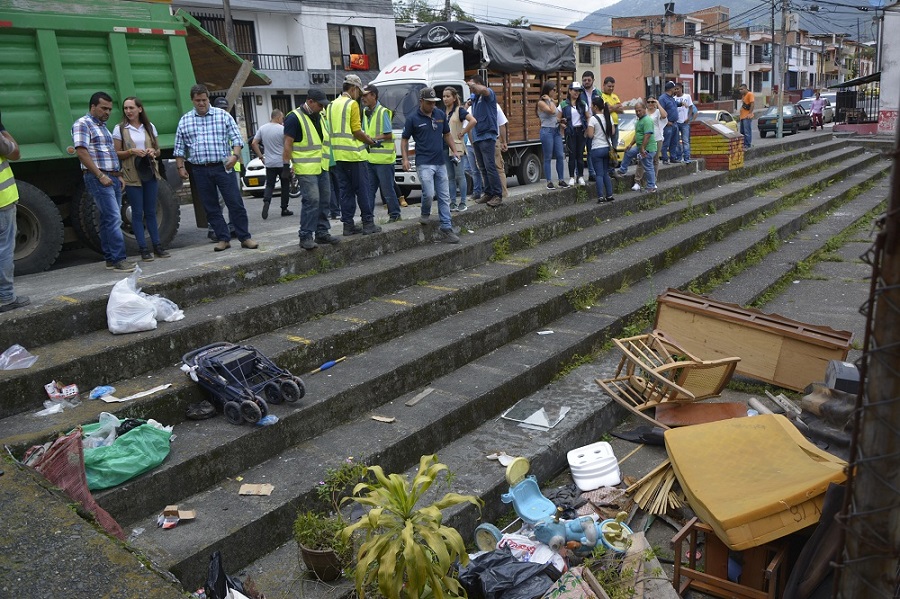 Descaradamente llenan las riberas de las quebradas, las avenidas y puntos de cruce vehicular y peatonal con todo cuanto les sobra, sin importarles si estorban el paso y ponen en peligro a las personas, que se ven obligadas a bajar de los andenes para esquivarlos, y que también ocasionan malos olores y contaminación visual y ambiental.