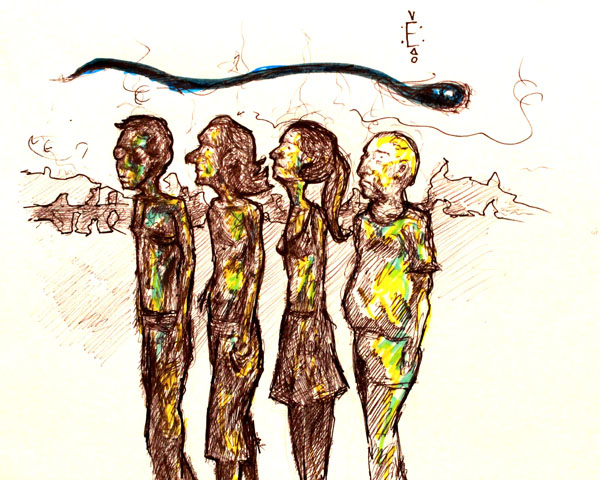 Luego de años de noviazgo, tú y ella decidieron casarse. Fue una fiesta de matrimonio bien planeada. Entre los invitados estaban los del equipo de fútbol. Quizá fueron los tragos o palabras de más las que se atravesaron, pues percibiste a voz difuminada el desespero de una enemistad. El cinismo era evidente. Durante la fiesta viste de lejos que el vestido blanco y de velo se entrelazaba con un esmoquin negro. No eras tú. Diste la posibilidad de confundir caricias íntimas con abrazos fraternos.