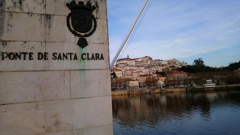 Visito cuanta iglesia puedo, no soy creyente, pero me gusta apreciar la arquitectura religiosa cuando vale la pena hacerlo. Los templos medievales coimbrenses están magníficamente conservados. Estoy ahora en el centro de esta pequeña grandiosa ciudad. Viejos edificios de una minúscula anchura que desafían la imaginación. Pero me asombran aún más los colores, tanto los naturales como los artificiales y la luz generosa que me acompaña. Pongo mis pies en la Plaza de la República. Coímbra es preciosa por donde se la mire. Al fin el río Mondego me saluda y yo a él. Lo sigo, me sigue. Llego al Puente de Santa Clara, me detengo, hago fotos, tomo una amplia bocanada de aire. Atardece. Avanzo, el río se pierde.