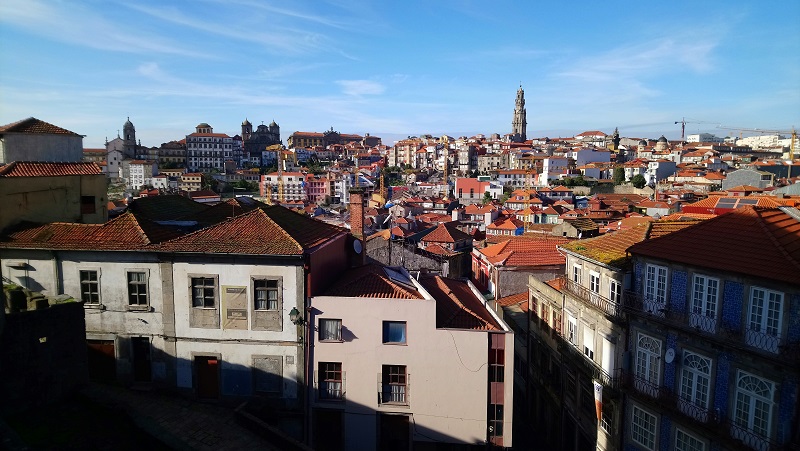 Después de instalarme en mi alojamiento voy a almorzar. Me atiende uno de los más amables meseros que me han atendido en toda mi vida. Los portugueses tienen fama de hospitalarios en toda Europa. Un teatro de fachada rosada llama mi atención. Es nada menos que el Teatro Nacional São João. Le doy toda la vuelta y me digo que no tiene nada que envidiarle a los de París y Praga. Sigo caminando y descubro la Plaza de la Batalla. El letrero de patrimonio mundial que de rigor se instala para estos casos en España y Portugal, en su información bilingüe (portugués e inglés) cuenta que la plaza debe su nombre, según la tradición, a una batalla entre moros y cristianos que tuvo como escenario este lugar. En el centro se ubica un monumento a Don Pedro V diseñado por Teixeira Lopes (padre) e inaugurado en 1866. Una calle con fachadas de azulejo me recuerda a Sevilla.