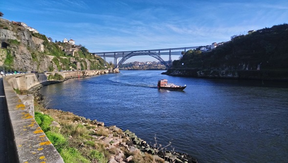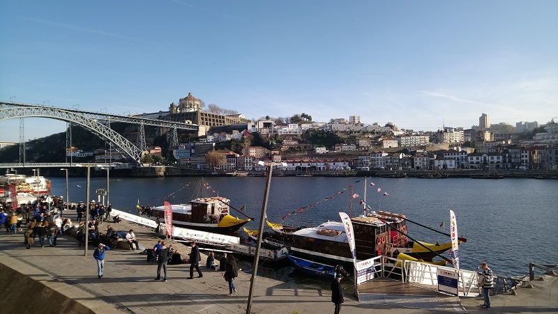 Llego a la ciudad amurallada y, como es mi costumbre, hago mi recorrido por toda la muralla y me interno en la zona medieval. Es un viaje a través del tiempo a pie, sin máquina del tiempo. Voy de una época a otra. En los balcones no faltan los tiestos de plantas. En la ciudadela medieval un monumento a un héroe nacional con aspecto de cruzado, Vimara Peres, muerto en el 868 d.C. Esta vez no me resisto a entrar al museo de un templo románico-gótico, San Francisco, que guarda reliquias renacentistas y barrocas. Poco a poco me voy acercando al Duero y los puentes que lo cruzan, al ambiente portuario y pesquero. Los seguidores de un equipo holandés se divierten. Beben cerveza a borbotones. Me aproximo al intimidante Puente Don Luis I de dos pasarelas, una de ellas vertiginosamente aérea. No me siento capaz de subir hasta ella. Camino hacia la zona de pesca. Contemplo los otros puentes. Del otro lado está Vila Nova de Gaia con sus bodegas de vino y el afamado y tan apetecido Oporto. Finalmente estoy en el muelle. Ambiente bohemio y romántico a más no poder. Me quedaría aquí toda la tarde pero es tanto lo que hay que ver que sigo otras rutas.