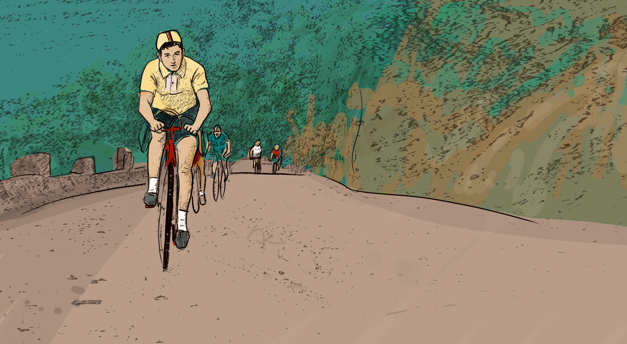 Ibagué – Girardot, 88 km. Se presiente el final, el regreso al punto de partida. Los corredores de Cundinamarca se hicieron dueños de sus carreteras. El plano asfaltado fue un tira y afloje entre pasistas y velocistas. Nada se guardaron, nunca lo habían hecho, y menos esa vez que había rumor de capital y meta definitiva. Hombres que no entendían el significado de dosificar esfuerzos, que se dedicaban al trabajo de la nobleza terca y desmedida. Y así, levantando polvo y escupiendo amarillo, se fueron turnando entre percances y ataques desenfrenados. Entre Buenos Aires y Gualanday, el Zipa cedió y su cadena le dijo no más. Rápidamente se reincorporó e impulsó a su compañero Hernández, cortándole el viento. Pero adelante llegó Oyola, valiente velocista, seguido de la legión de Cundinamarca.
