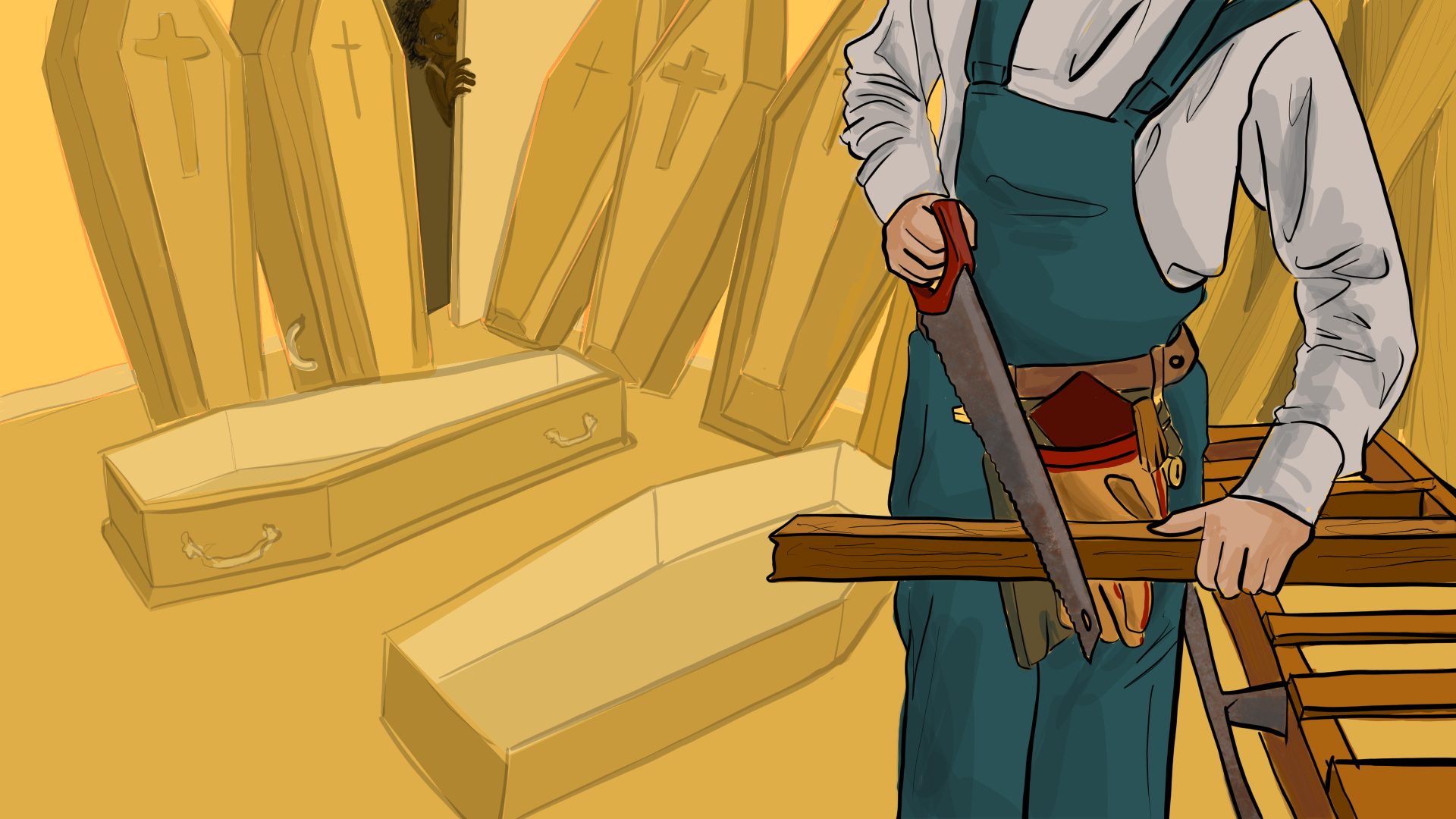 Fabricaba ataúdes. Los hacía, y no daba abasto, para las funerarias de los pueblos. Cajones sencillos, en una misma línea, taponados, con una que otra moldura para matizar la dureza de la geometría y justificar un precio. Los de manijas aluminadas, bombillitos laterales o sobretapa, eran por encargo.