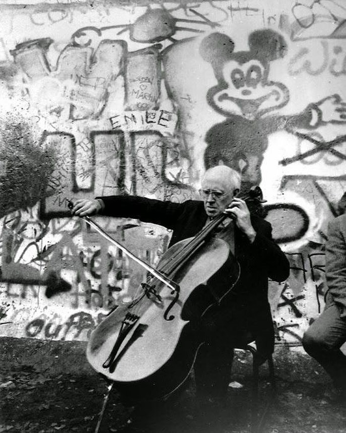 El 11 de noviembre de 1989, dos días después de iniciarse la caída del Muro de Berlín, Rostropóvich tocó delante de sus ruinas la Suite No. 2 para violonchelo de Johann Sebastian Bach, como un gesto de respaldo a los países de Europa del Este en su proceso de apertura política a Occidente.