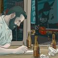 llorando una traición con amargura