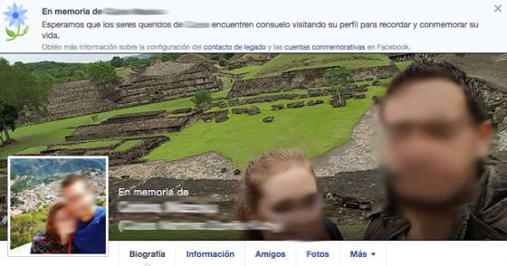 Las cuentas conmemorativas son una iniciativa de Facebook, mediante la cual se busca “proporcionar un lugar para que amigos y familiares se reúnan y compartan recuerdos de un ser querido que falleció”, según explica la propia red social en su apartado sobre el tema. En este tipo de perfiles aparece la frase “En memoria de” junto al nombre, el contenido que la persona haya publicado permanece visible para el público con el que se haya compartido. En caso de que alguien fallezca y no haya designado un contacto de legado, un familiar se debe poner en contacto con Facebook para reportarlo, y después de haber comprobado su parentesco, se podrá eliminar o establecer la cuenta como conmemorativa.