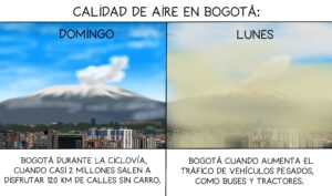 A pesar de la poca mejoría en la calidad del aire en los últimos años en Bogotá. Aún los registros, durante la semana, siguen siendo lamentables, afectando a los barrios más pobres que tienen menos áreas verdes. Necesitamos ciudades que prioricen a los humanos y no a los carros.